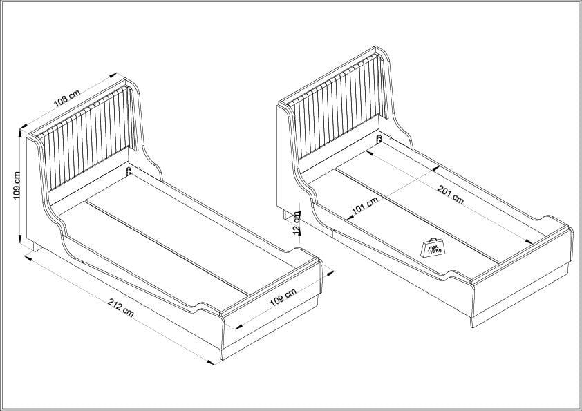 • Yuvarlatılmış Köşeler: Karyola başlığının köşeleri, yuvarlatılmış kavisli bir tasarıma sahiptir. Bu detay, karyolaya daha yumuşak ve zarif bir görünüm kazandırır.