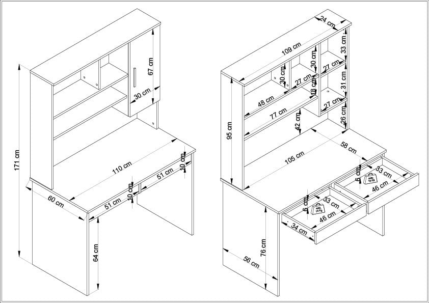 RIGA Çalışma Grubu konforlu ve estetik dokunuşlara imkan veren bir çalışma alanı olarak tasarlandı. Kitaplıklı Çalışma Masasına eşyalarınızı rahatça yerleştirebilir; kapalı bölmesi, çekmeceleri ve rafları ile masa üstünü hem düzenli tutabilir hem zevkinize göre dekore edebilirsiniz.