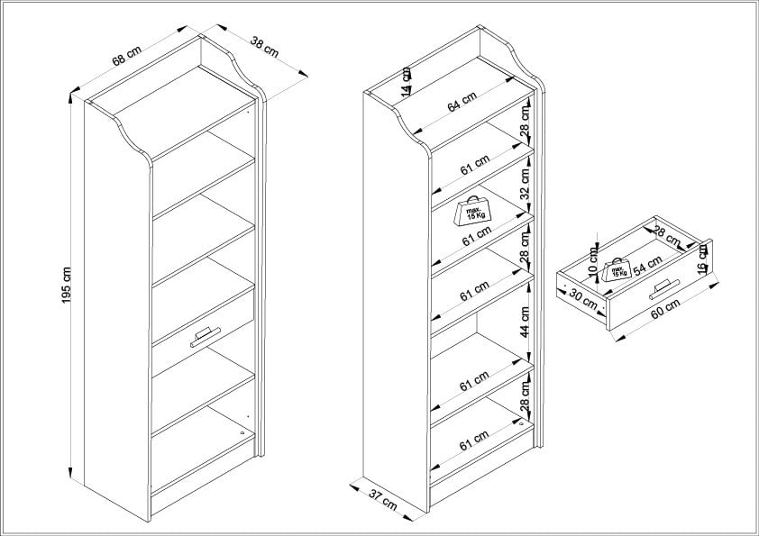 • Dayanıklı Malzeme: Kitaplık, E1 sertifikalı, 1. kalite 18mm yonga levhadan üretilmiştir, bu sayede uzun yıllar boyunca güvenle kullanabilirsiniz.