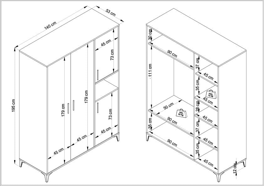 • Dolap rafları 25kg taşıyabilir ve ihtiyaca göre çıkarılıp takılabilir