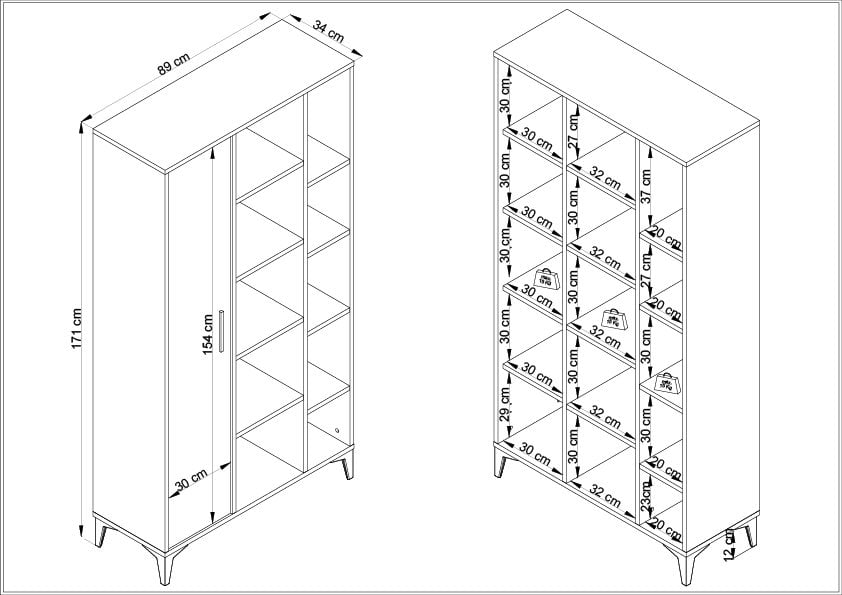 • Kitaplık rafları 25kg taşıyabilir ve ihtiyaca göre çıkarılıp takılabilir