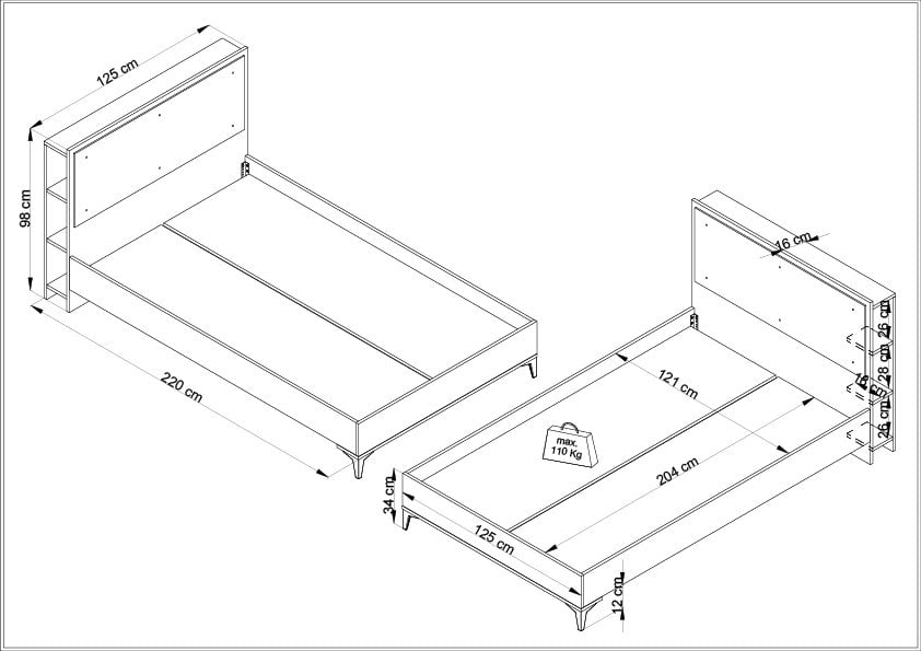 • Karyola başlığı döşemesinde 4cm, 28DNS sünger kullanılmıştır