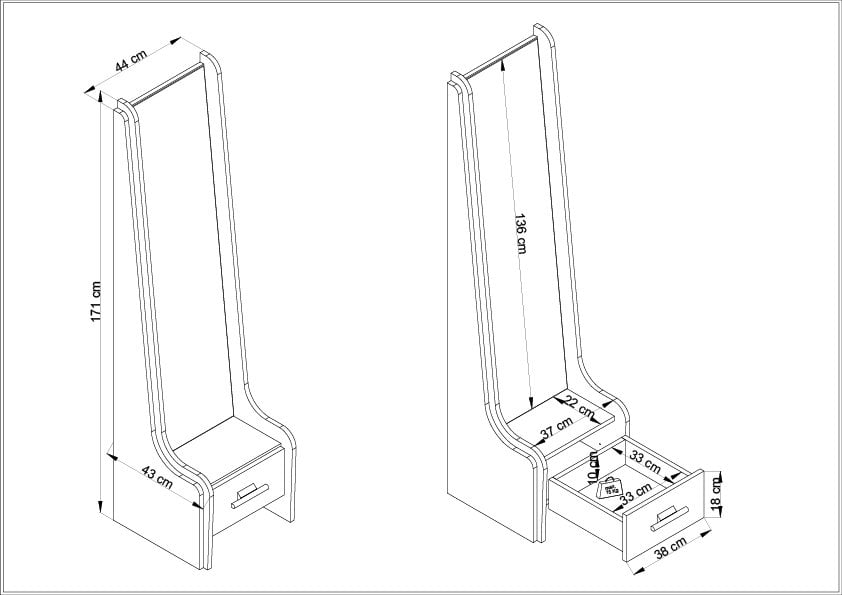 Çekmece İç : 33x33x10 cm